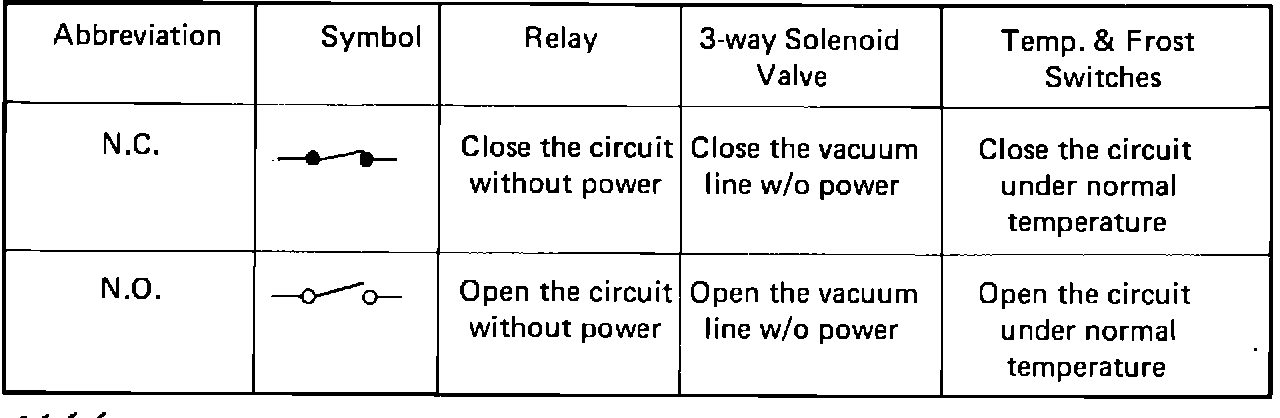 2. OPERATION OF SW & RELAY The usage of N.C. and N.O. in this diagram is explained below: