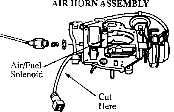 3. Remove the screws which hold the air/fuel solenoid to the air horn. Pull out the solenoid and discard it.