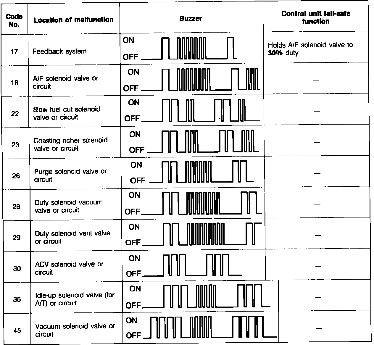Fig. 3 Self-diagnosis system trouble codes.: