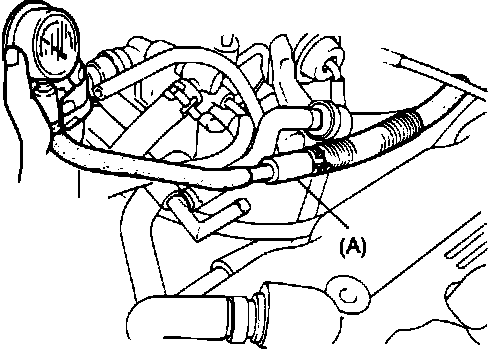 1. Disconnect main fuel line "A" from carburetor and connect to fuel pressure gauge, as shown in illustration.
