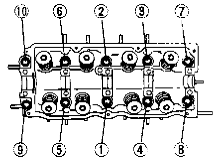 Tighten the cylinder head bolts in two or three steps in the order shown in the figure.