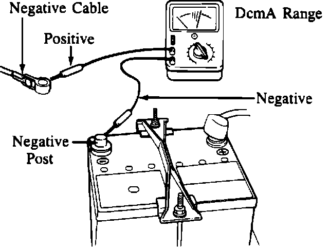 In order to maintain the memory of the electrical equipment such as radio, clock, and several other control units, a small amount of current is drawn from the battery even though the vehicle is not in use. Although the actual current may vary according to the electrical equipment in each vehicle, the following specification can be used to determine if the current draw of the vehicle in question is normal or not.