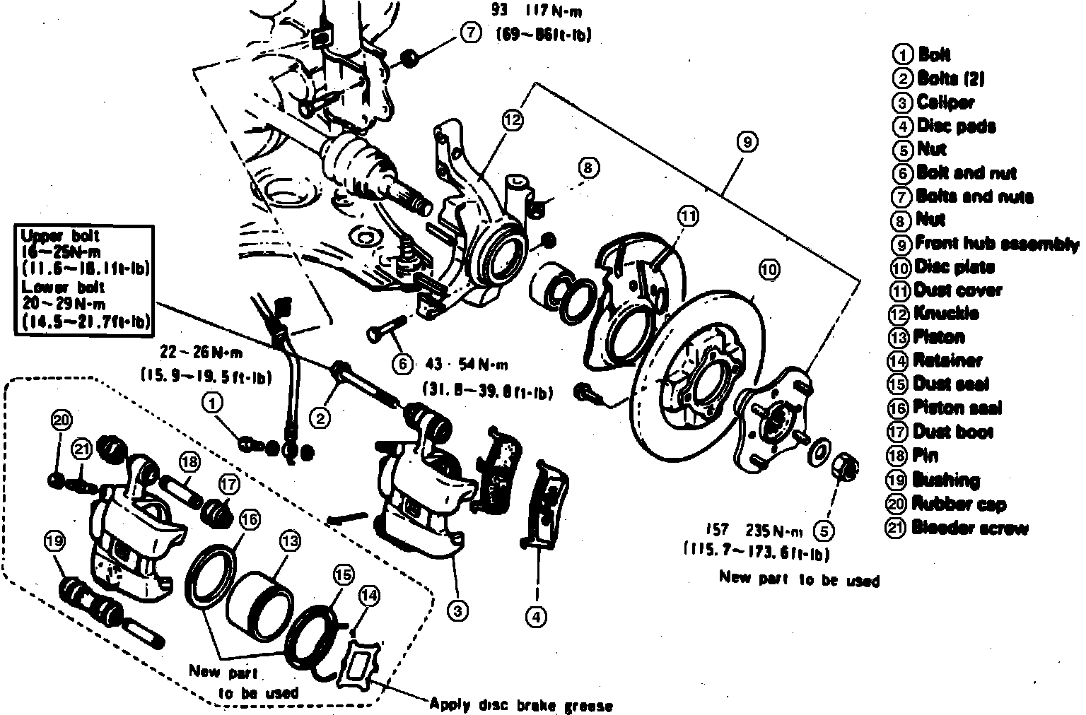 2. Remove brake hose clip and attaching bolt, then disconnect and cap brake hose from caliper.