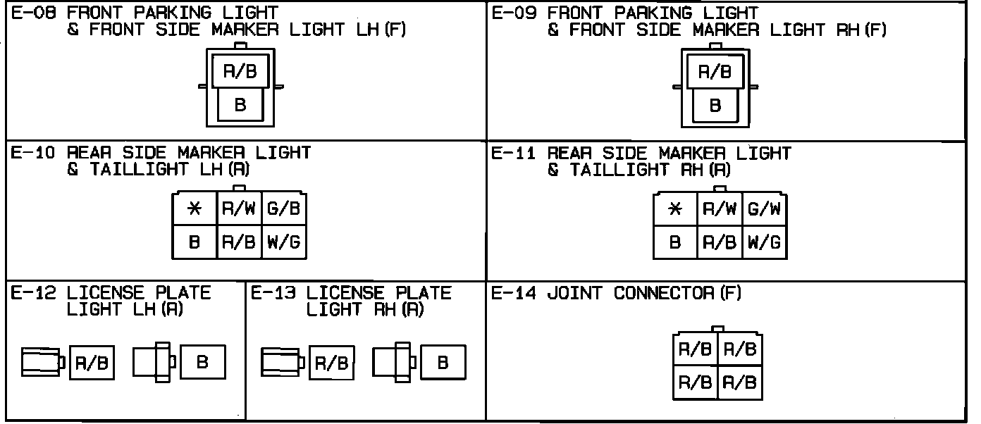 Tail, Front Parking, License Plate. Front And Rear Side Marker Lights. Connector Identification: