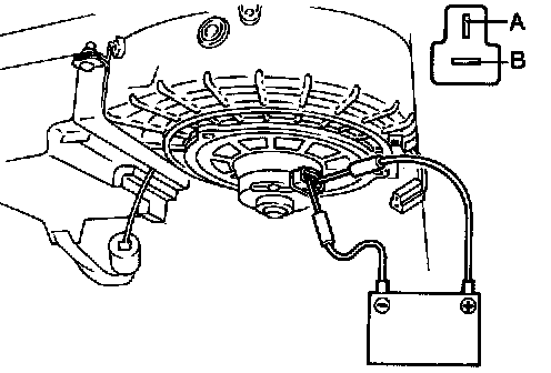 4. Check that the blower motor runs when connecting 12V to terminal B and grounding terminal A.