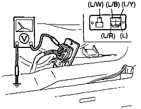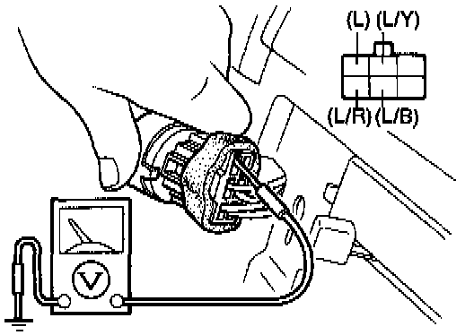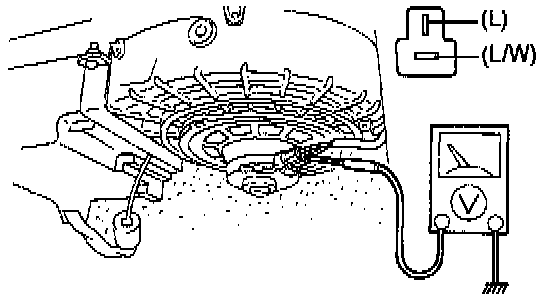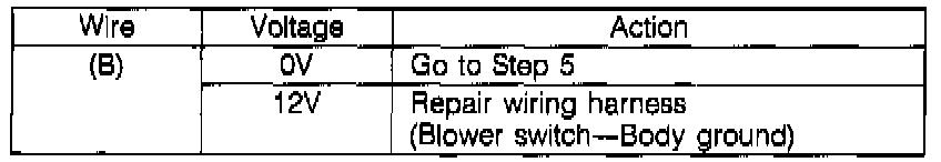 3. Measure the voltage at terminal-wire (B) of the blower switch connector.