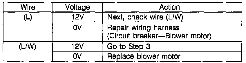 3. Measure the voltage at terminal-wires of the blower motor connector.