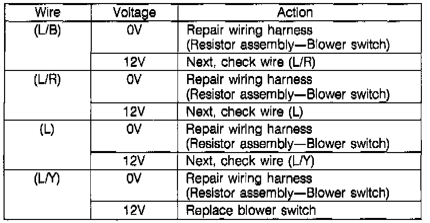 3. Measure the voltage at the terminal-wires of the blower switch connector.