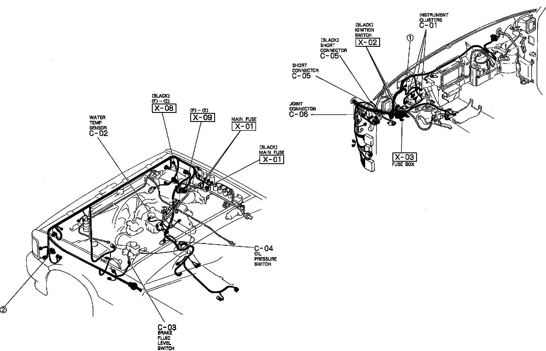 Instrument Clusters. Fuel And Temperature Gauge. Tachometer. LH And RH Turn, Brake, Oil, Belts, Rear Wheel ABS, Hi Beam, Charge And Check Engine Indicators. Harness And Connector Locations.: