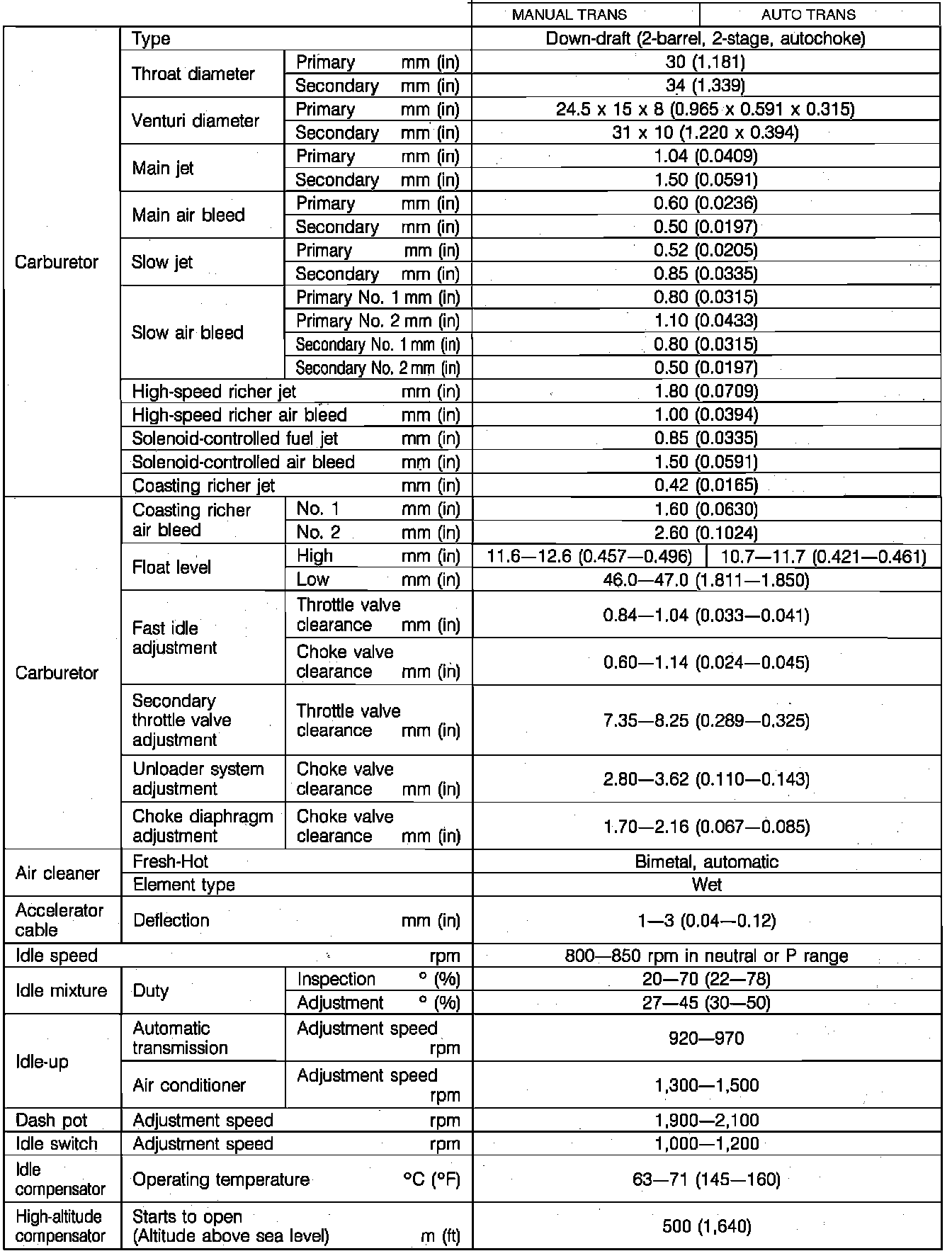 Fig. 16 Carburetor Specifications: