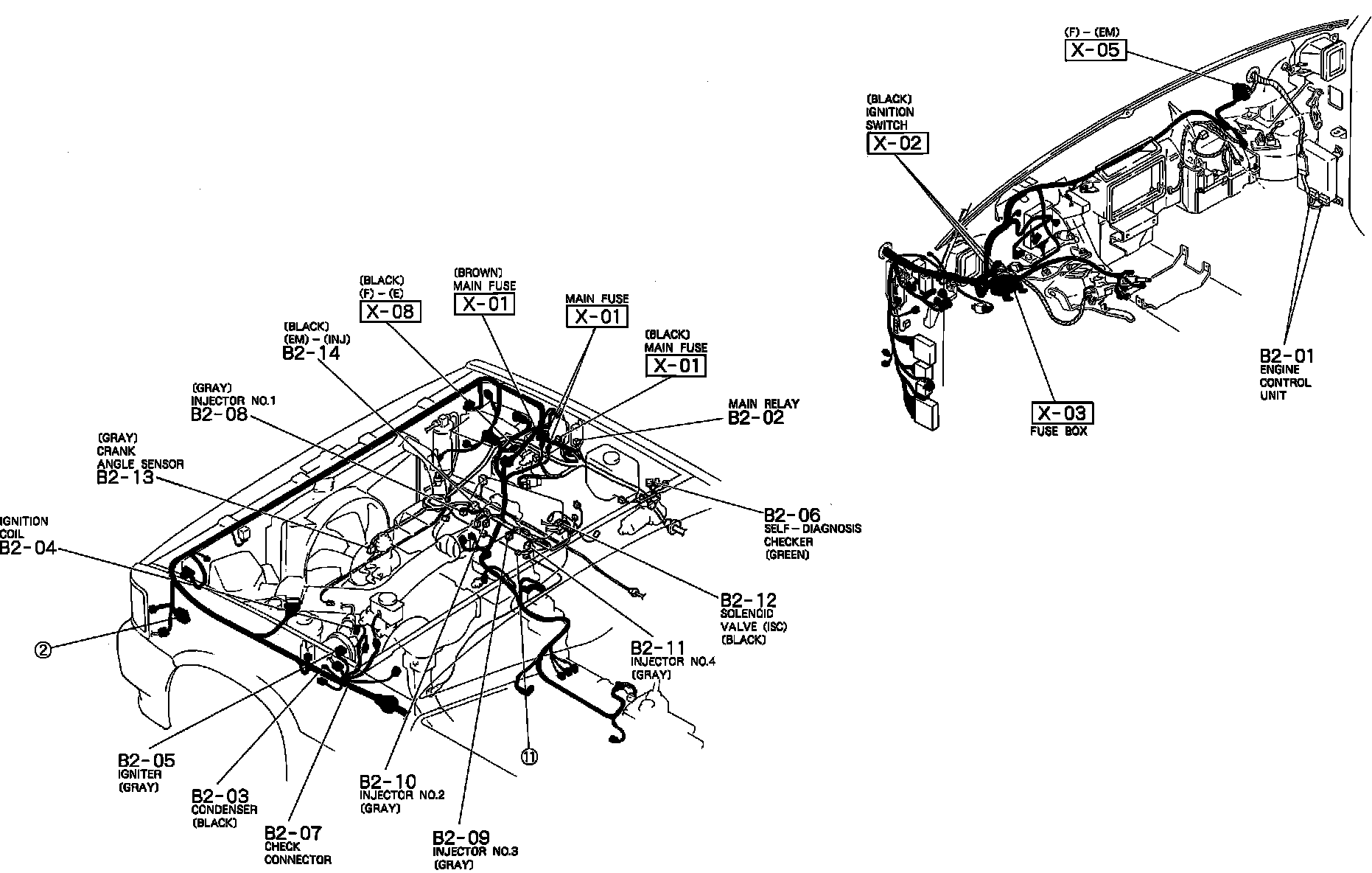 Ignition System And Engine Control System. EGI. Harness And Connector Locations: