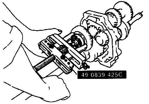 4. Remove the countershaft front bearing with the SST.
