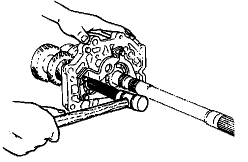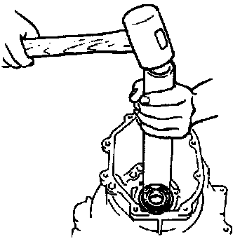 3. Remove the main drive gear bearing from the transmission case with a suitable pipe.