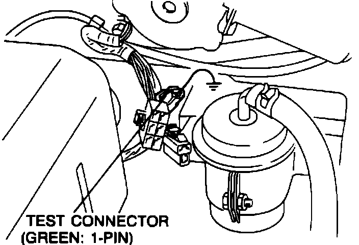 ^ The Test Connector is a green, one pin connector located in the engine compartment.