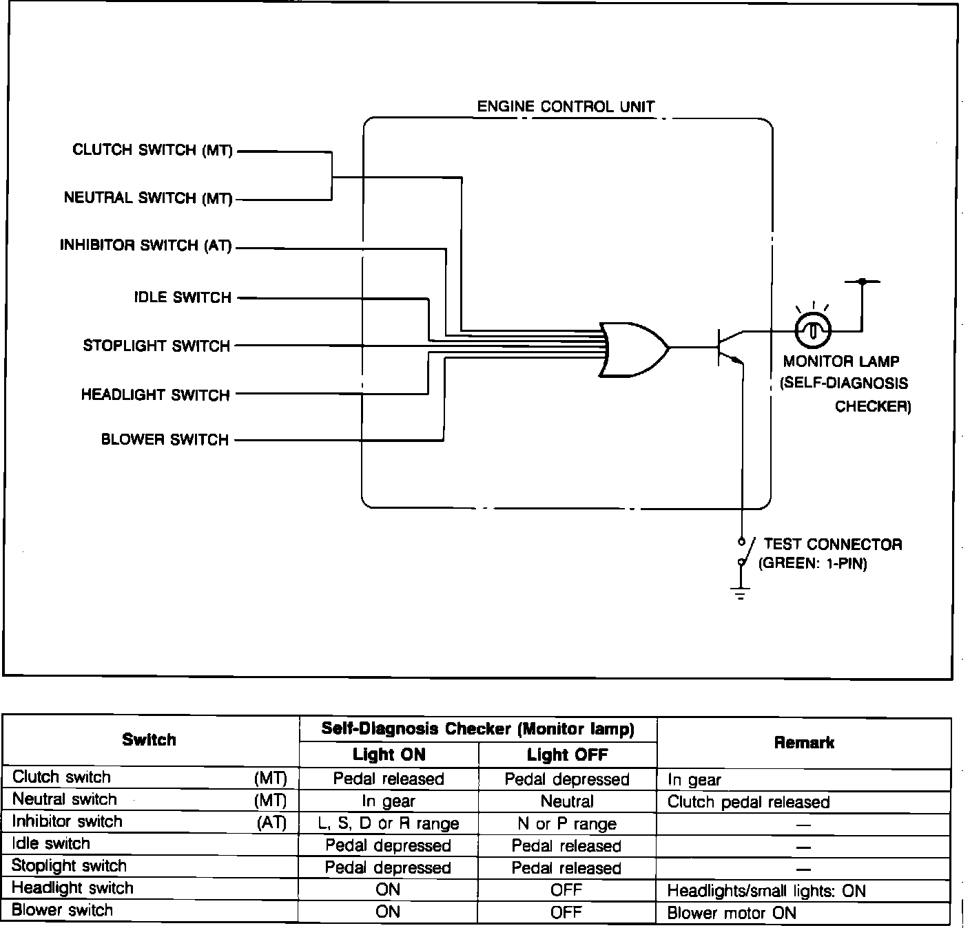 ^ The ECU Switch Monitor Function permits checking individual switches with the Mazda Self-Diagnosis Checker (SST 49 H018 9A1) or a compatible aftermarket "Scan" tool.