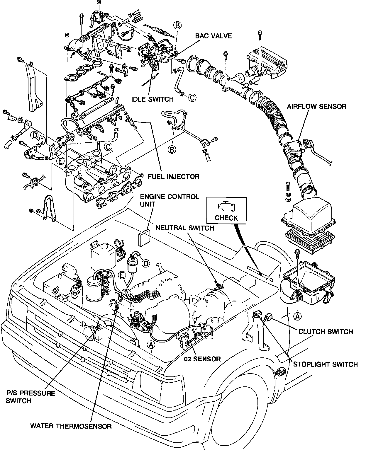 Mounted on intake boot between air cleaner box and throttle chamber.