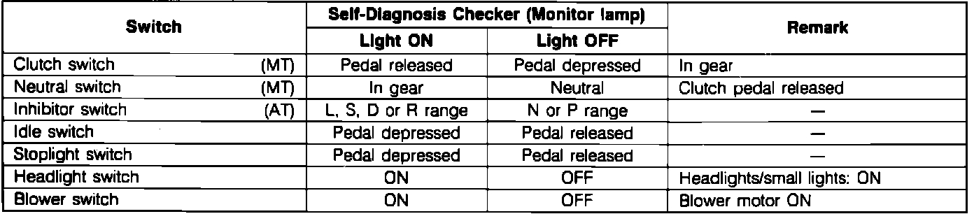 4. Turn ignition ON, then check that monitor lamp illuminates when each switch is made to function according to procedure below.
