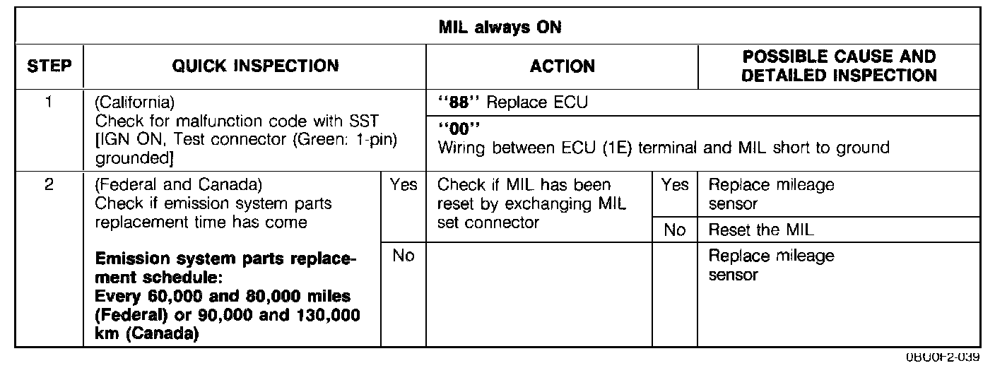 Malfunction Indicator Lamp (MIL) Always on