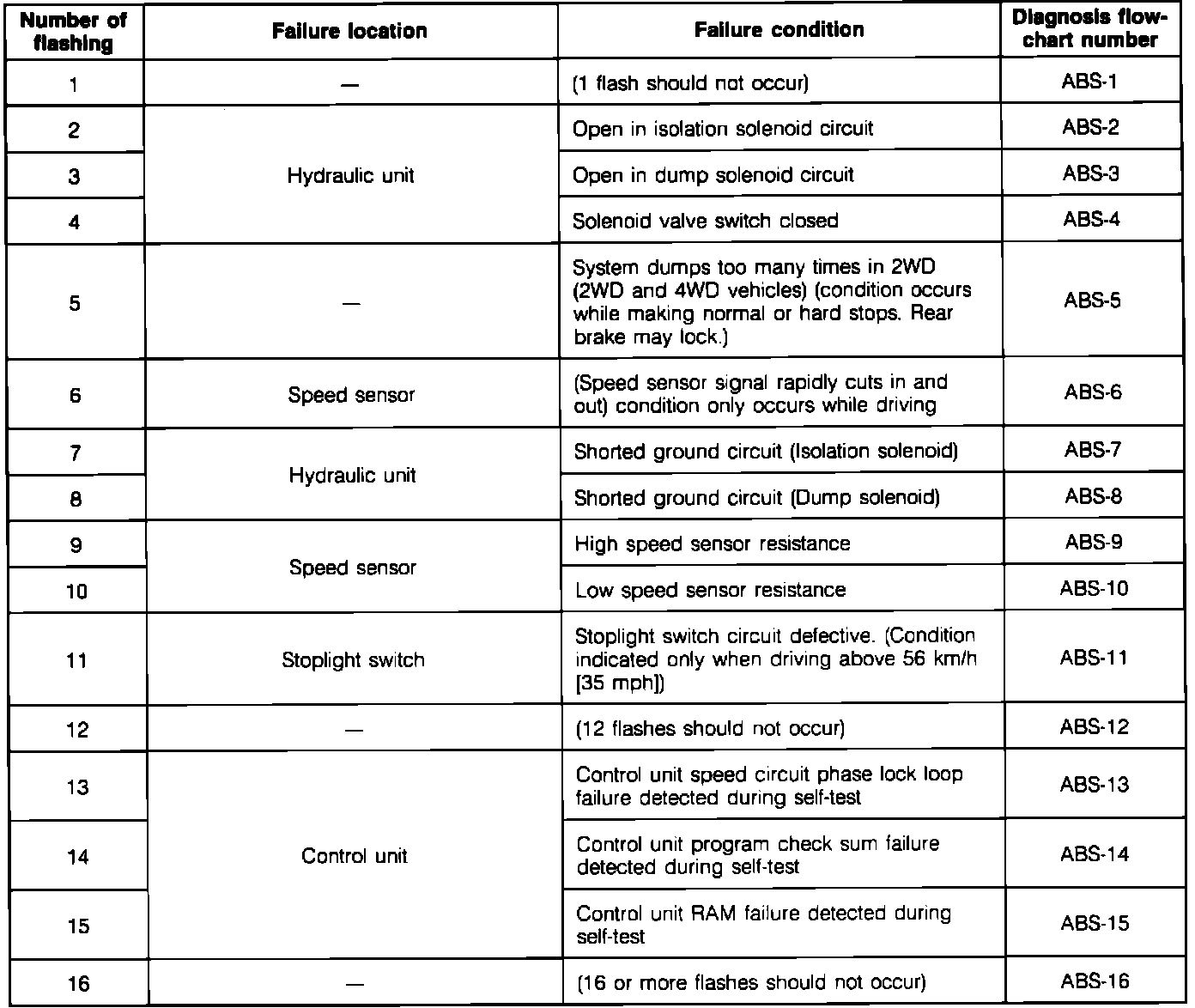 Anti-lock Brake System Diagnosis (Flashing Pattern Description):