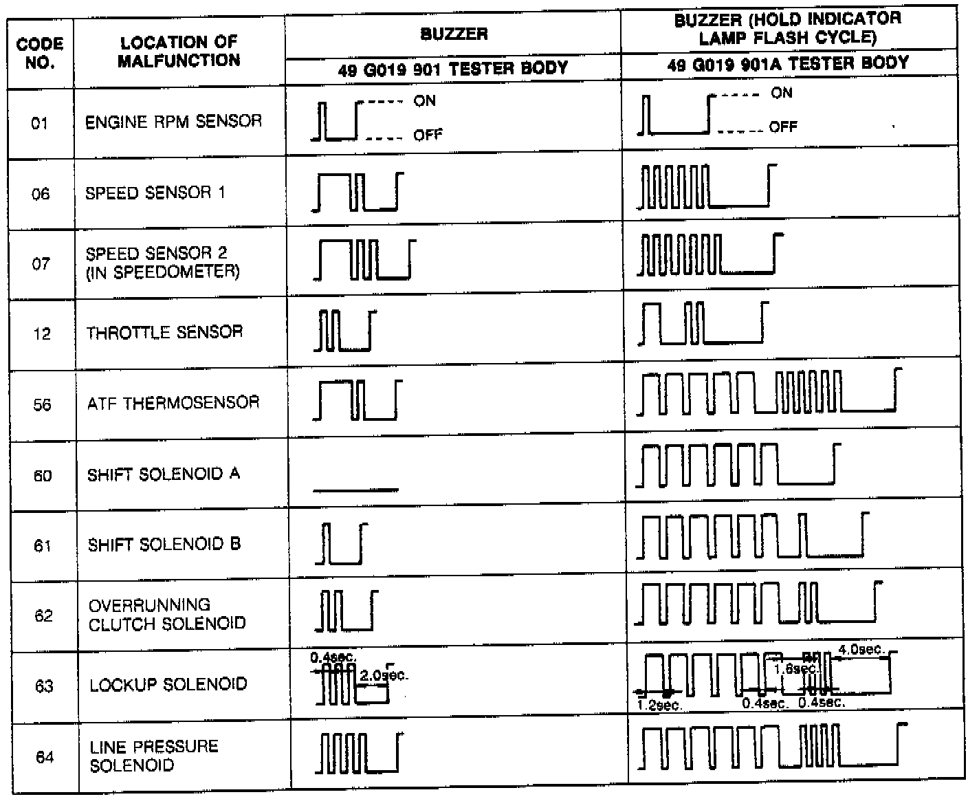 Electronic Transmission Malfunction Code Chart: