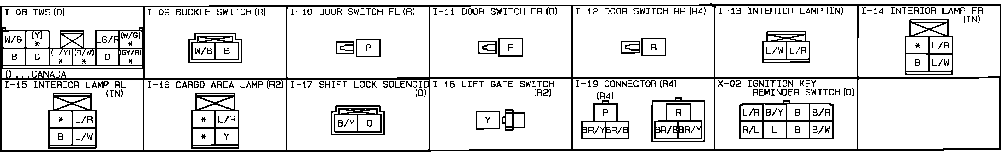 Interior Lamps, Shift-Lock System And Central Processing Unit. Connector Identification: