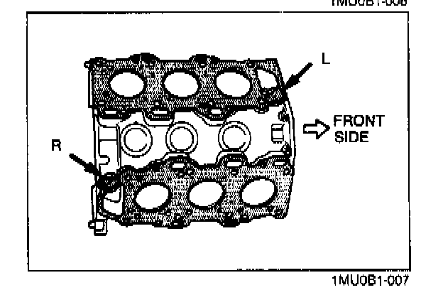 e. Place new cylinder head gasket on left bank with L mark facing upward.