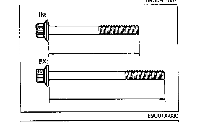 h. Measure length of bolts, which should be 4.25 inch (108mm) for intake and 5.43 inch (138mm) for exhaust. If length is greater than 4.29 inch (109mm) for intake or 5.47 inch (139mm) for exhaust, replace bolts.