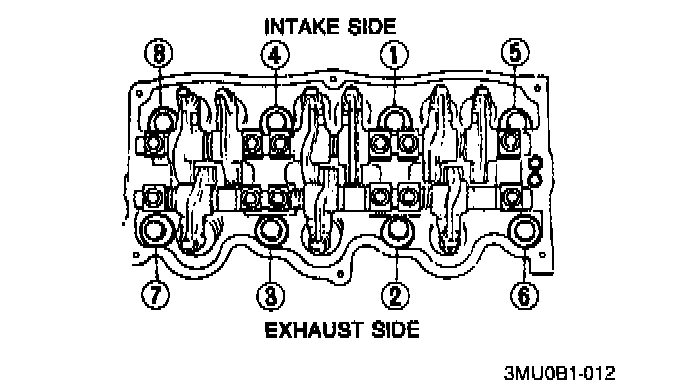 k. Put paint mark on each bolt head and, using paint mark as reference, tighten cylinder head bolts 90° in sequence, then an additional 90° in sequence.