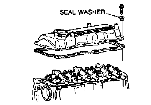 l. Place cylinder head cover gasket in position, then install cylinder head cover with new seal washers, torquing to specification.