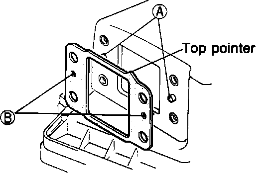 6. Install a new gasket, making sure that pins "A" fit into the holes "B." Install airflow meter to air filter housing. Torque to 5.8 - 8.0 ftlb (8 - 11 Nm).