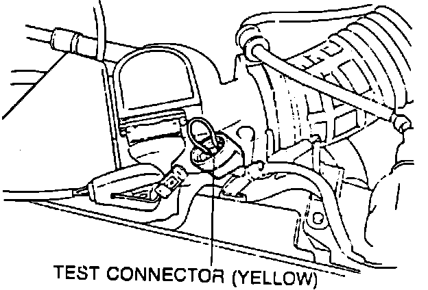 3. Energize fuel pump by bridging the terminals of the yellow fuel pump test connector (located near the air flow sensor, see illustration) and turning ignition "ON"