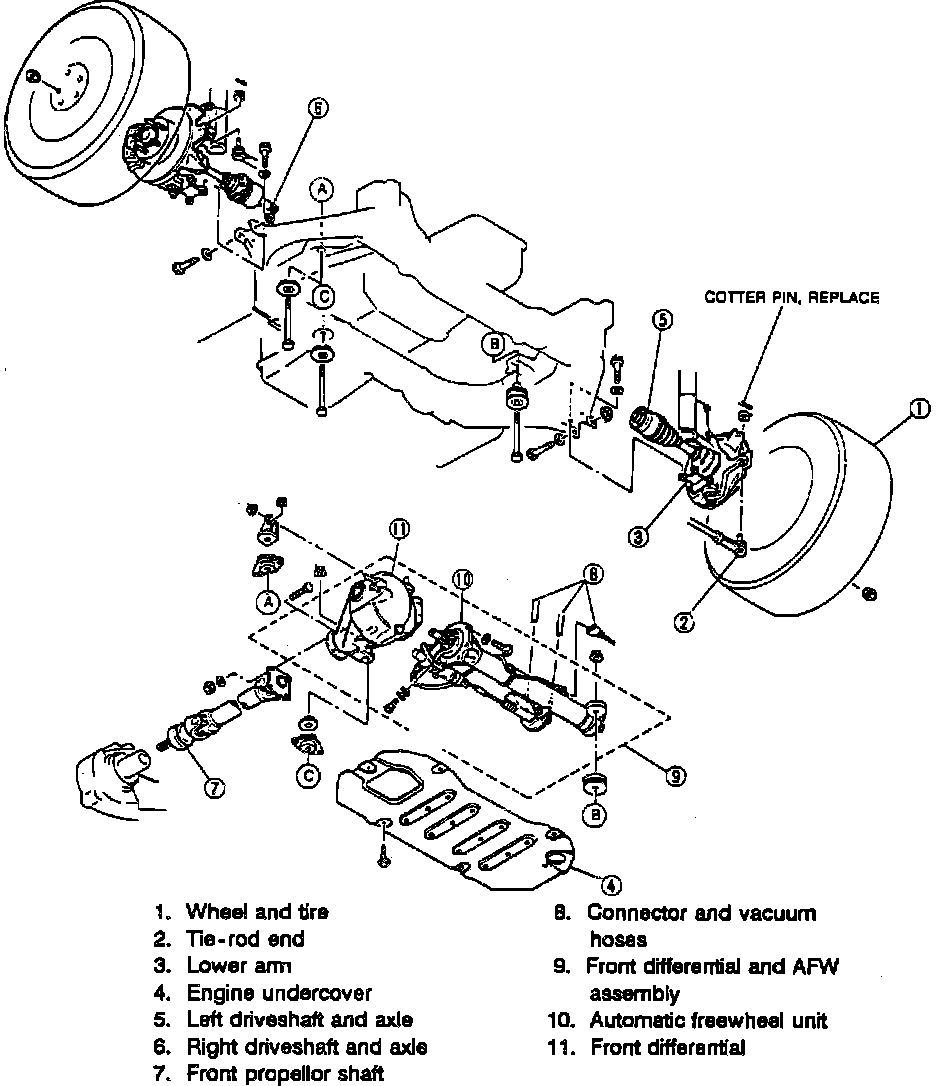 Fig. 8 Front Differential And Automatic Freewheel Unit Replacement: