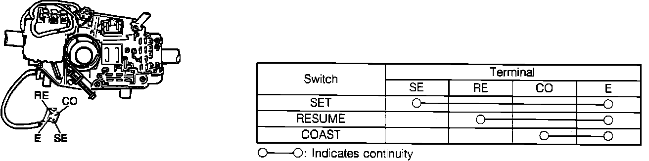 7. Check for continuity between terminals of cruise control switch. If switch operates correctly, repair wire harness.