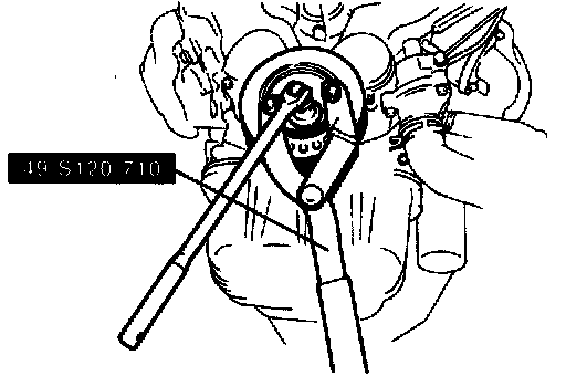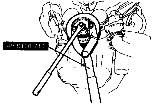Hold the crankshaft pulley with the SST and remove the lock bolt.