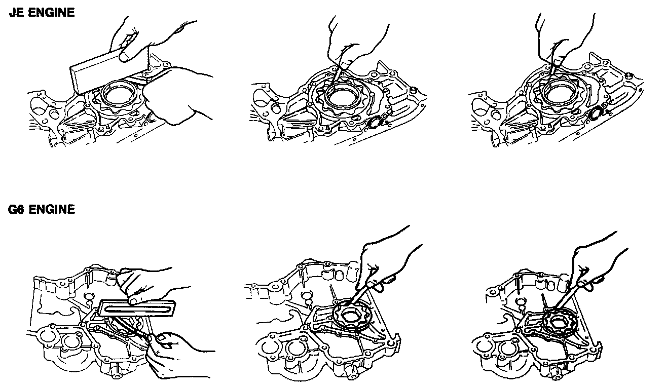 1. Apply engine oil to the pump body and the outside of the new oil seal.