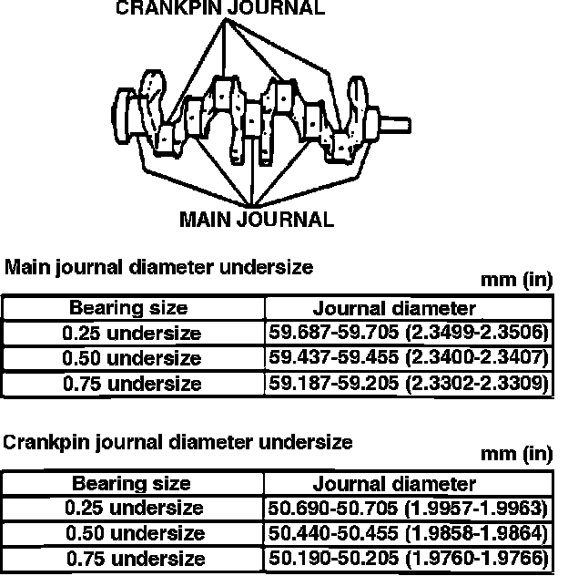 3. Measure main journal and crankpin diameter for wear. If journal or crank pin diameter are not as specified in Fig. 10, replace or grind crankshaft to match an undersized bearing.