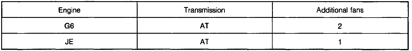 ^ The number of additional fans is related to the engine and transmission combination as follows: