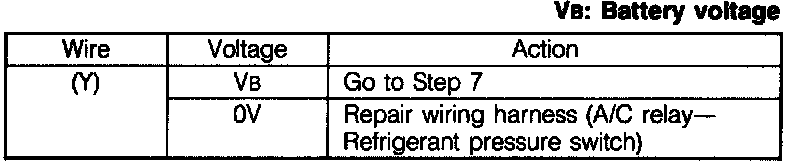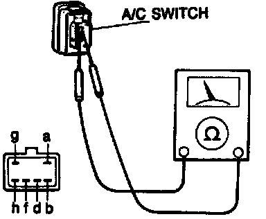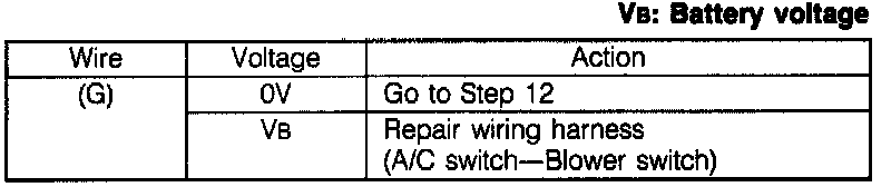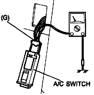 3. Measure the voltage at terminal-wire (G) of the A/C switch connector.