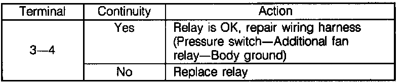 5. If the fan(s) operates, disconnect the jumper wire and reconnect the additional fan relay connector, and go to Step 5.