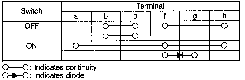 2. Check continuity between terminals of the switch as shown.