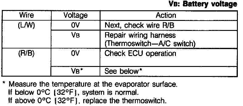 3. Measure the voltage at terminal-wires (L/W) and (R/B) of the thermoswitch connector.