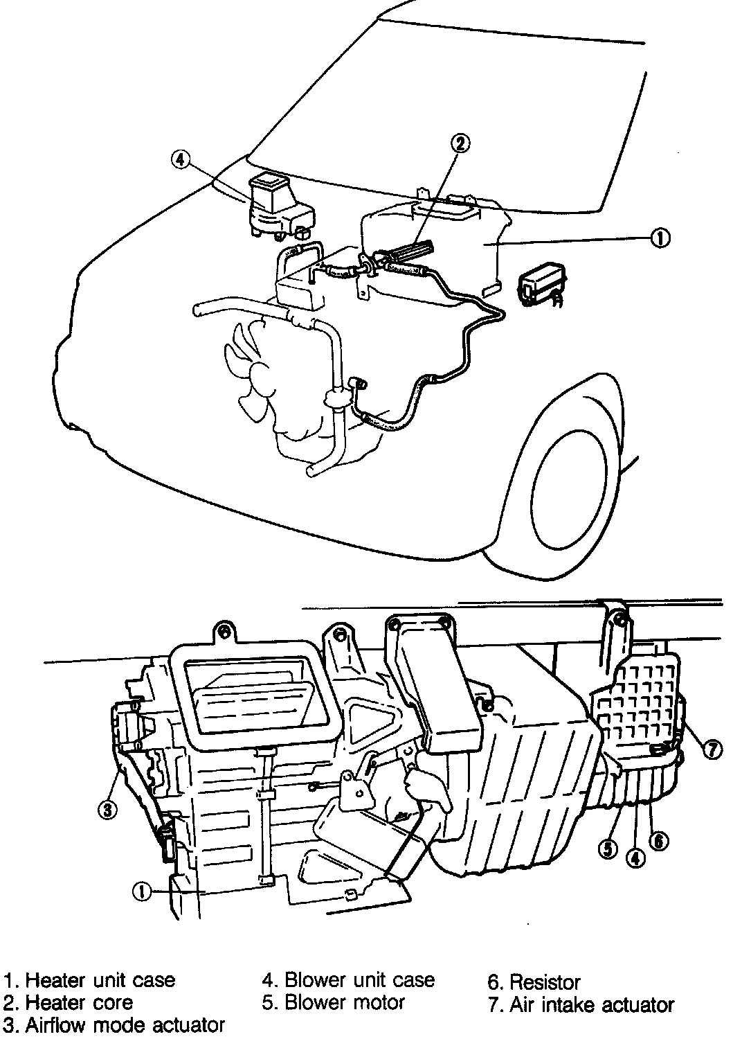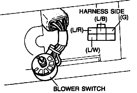 Blower motor speed is controlled by the blower switch at the center of the dash panel and by a resistor assembly in the blower unit.
