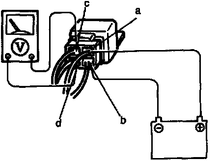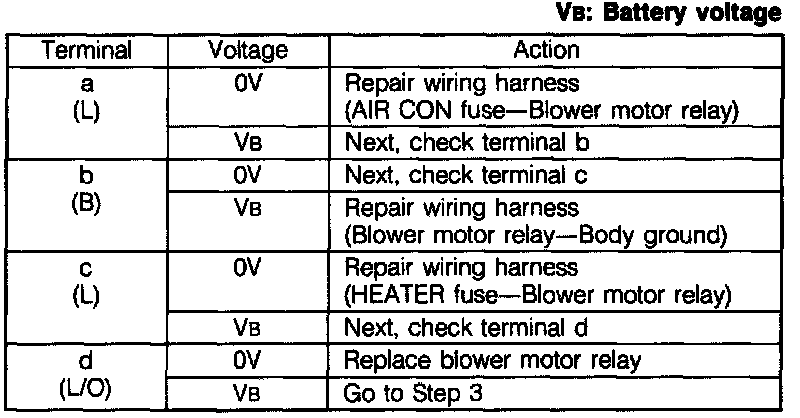 2. Measure the voltage at the following terminals of the blower motor relay connector.