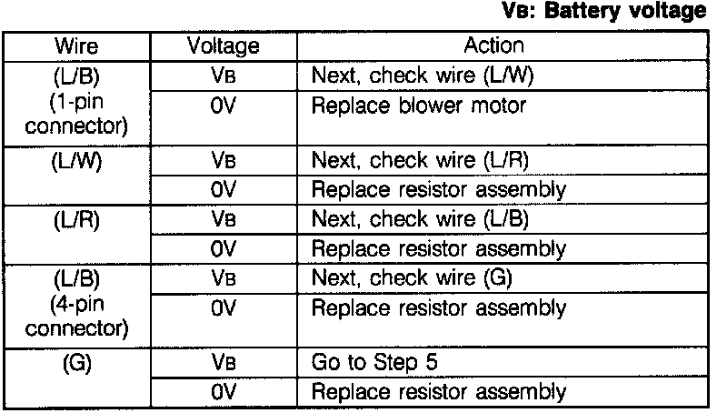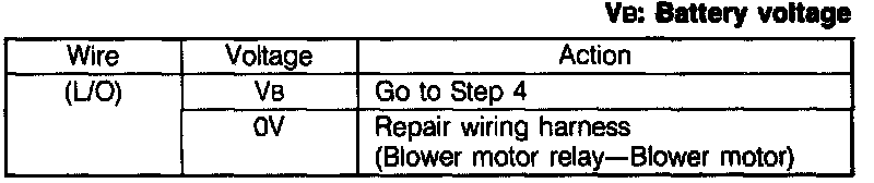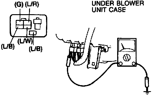 3. Measure the voltage at terminal-wire (L/O) of the blower motor connector.