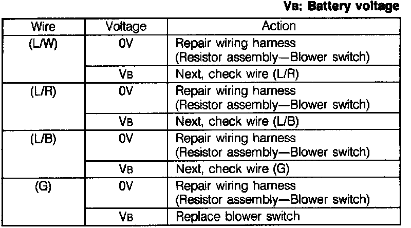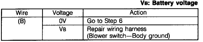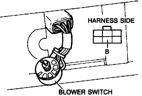 3. Measure the voltage at terminal-wire (B) of the blower switch connector.