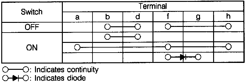 . Check continuity between terminal of the switch as shown.