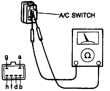 3. If not as specified, replace the A/C switch.