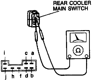 2. Check continuity between terminals of the rear cooler main switch connector as shown.