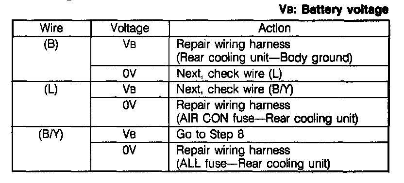 Rear Cooler Blower Motor Does Not OperateNote: If the blower fan (front) also does not operate, Refer "Blower Motor Does Not Operate,". Blower Motor Does Not Operate