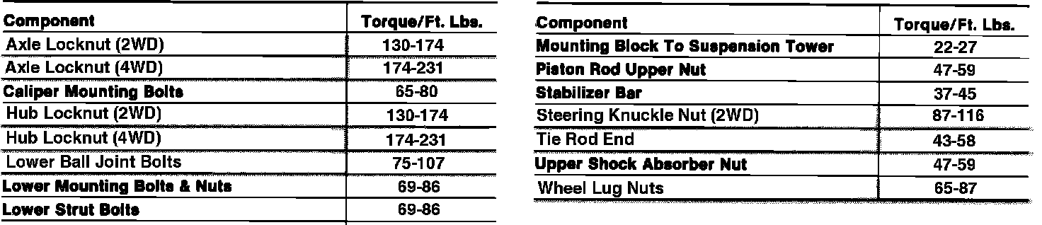 Tightening Specifications: